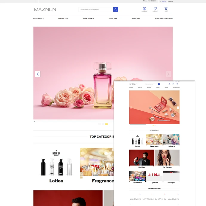 Maznun.Fashion — Online store for beauty, skincare, haircare, fragrances, and fashion accessories.